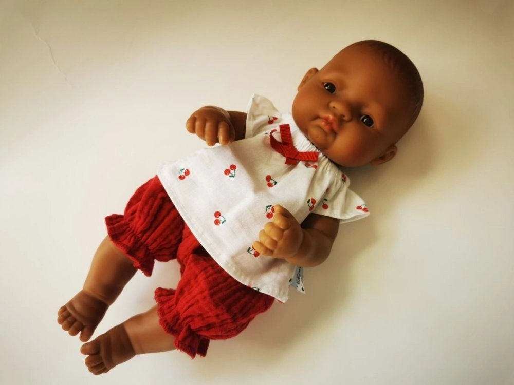 Musselinsæt til dukker 32 cm kirsebær