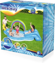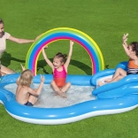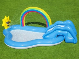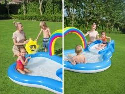 Denne vandlegeplads er det perfekte valg til børn til jeres sommer. Takket være den venlige kombination med regnbueport og sol vil jeres børn få timevis af sjov i det forfriskende vand. Bassinets multifunktionalitet giver ikke kun kølig skygge fra sommervarmen, men bringer også latter og glæde med sine mange funktioner.