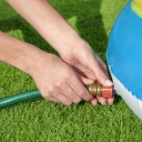 Bassinet er udstyret med en sprinkler, som du nemt tilslutter til haveslangen og dermed skaber en forfriskende vandbruser til leg og sjov.