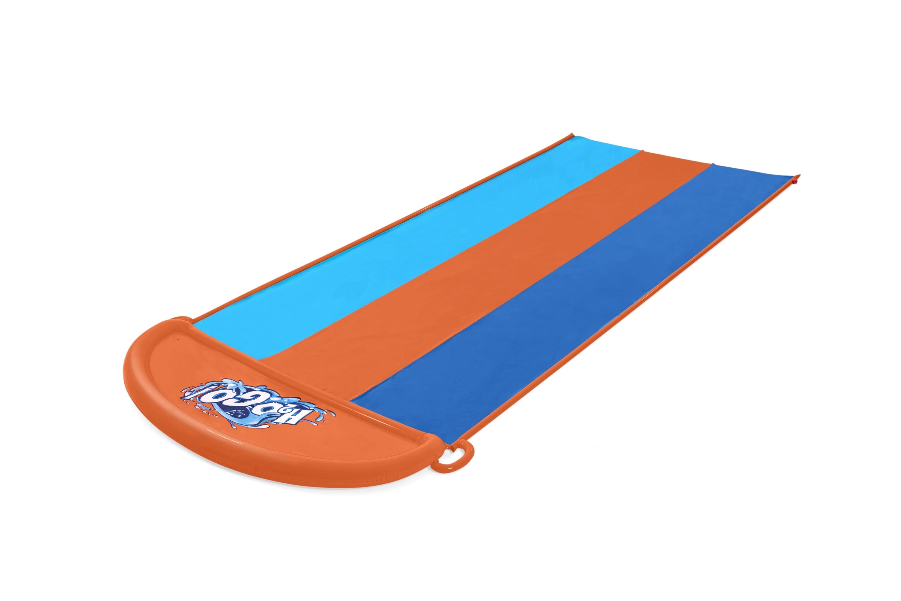 Kickstart sommeren med BESTWAY vandsklien på 4,88 m og tre kørebaner til børnenes kapløb. Integrerede sidemonterede brusehoveder holder overfladen glat – blot tilslut haveslangen, og så er legen i gang. Det holdbare PVC-materiale, den bløde landingszone og enkel opsætning uden værktøj sikrer tryg og endeløs vandleg for børn fra 3 år.