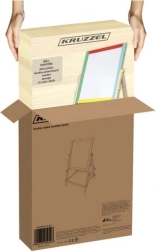 Den dobbeltsidede børnetavle KRUZZEL kombinerer kreativ leg og læring. Den ene side tilbyder en kridtoverflade til tegning med kridt, den anden en hvid tør-sletbar overflade med magnetfunktion til at skrive med tusch og lege med magneter. Et roterende system gør det nemt og hurtigt at skifte flade ved hjælp af vingeskruer.