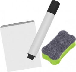 Inkluderer en hylde til opbevaring af redskaber samt startsæt: farvede kridt, tusch og svamp til øjeblikkelig brug.