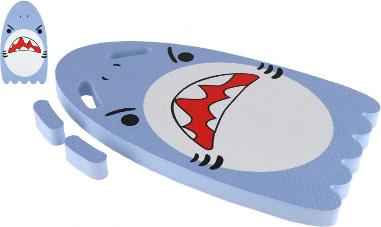 Brættet er fremstillet af holdbart, let og opdriftsstærkt skum, som flyder fremragende og samtidig er behageligt at røre ved. Det muntre hajdesign motiverer børn til både leg og træning og øger deres selvtillid i vandet. Brug kun under opsyn af en voksen.