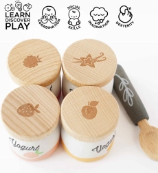 Start dagen med sættet af træyoghurter fra Le Toy Van! Det indeholder fire indbydende yoghurter med smag af fersken, vanilje, hindbær og jordbær. Trædelene støtter udviklingen af finmotorik og hjælper børn med at udforske vigtigheden af sund ernæring.