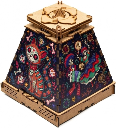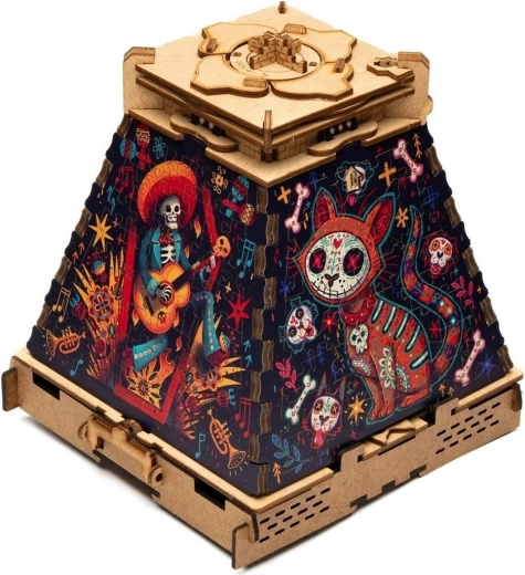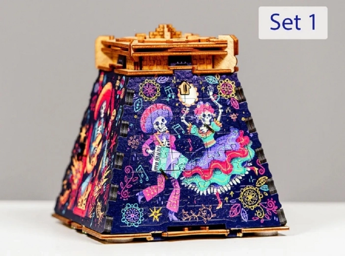 Forvandl dit ikoniske puslespil Solpyramiden til et farverigt blikfang med den tematiske udvidelse De dødes dag. Præcist udskårne træbrikker og dybe printfarver skaber et nyt lag, der fremhæver pyramidens design og gør den til en iøjnefaldende dekoration. Udvidelsen er udelukkende til udseende – den påvirker ikke løsningen af det originale puslespil.