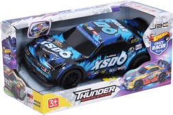 Kompakt racerbil med friktionsmotor byder på lys- og lydeffekter, som aktiveres ved at trykke på motorhjelmen. Takket være den blå lyseffekt og de praktiske mål 19,5 × 8,5 × 5,5 cm er den perfekt til actionfyldt leg hjemme og på farten. Batterier medfølger, så legen kan begynde med det samme.