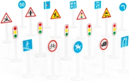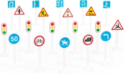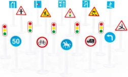 Gør skiltene klar, start bilen og kør afsted! Lær trafikskilte at kende på en sjov måde med dette plastiksæt!