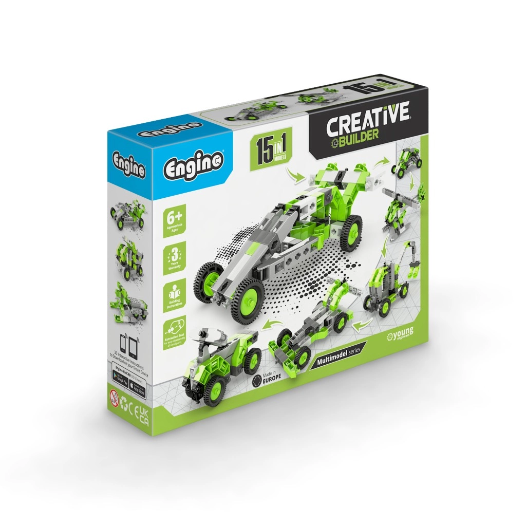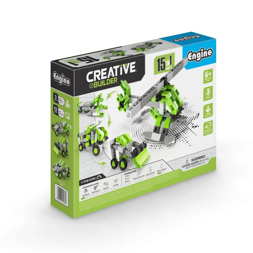 Opdag byggesættet ENGINO Creative Builder 15 i 1, som udvikler kreativitet, logisk tænkning og finmotorik hos børn fra 6 år. Af ét sæt kan du bygge op til 15 forskellige modeller efter vejledning og ved hjælp af den interaktive app Engino kidCAD med 3D-visning. Nemt at ombygge modellerne, høj kvalitet og kompatibilitet med andre Engino-byggesæt gør dette sæt til et perfekt valg for små konstruktører.