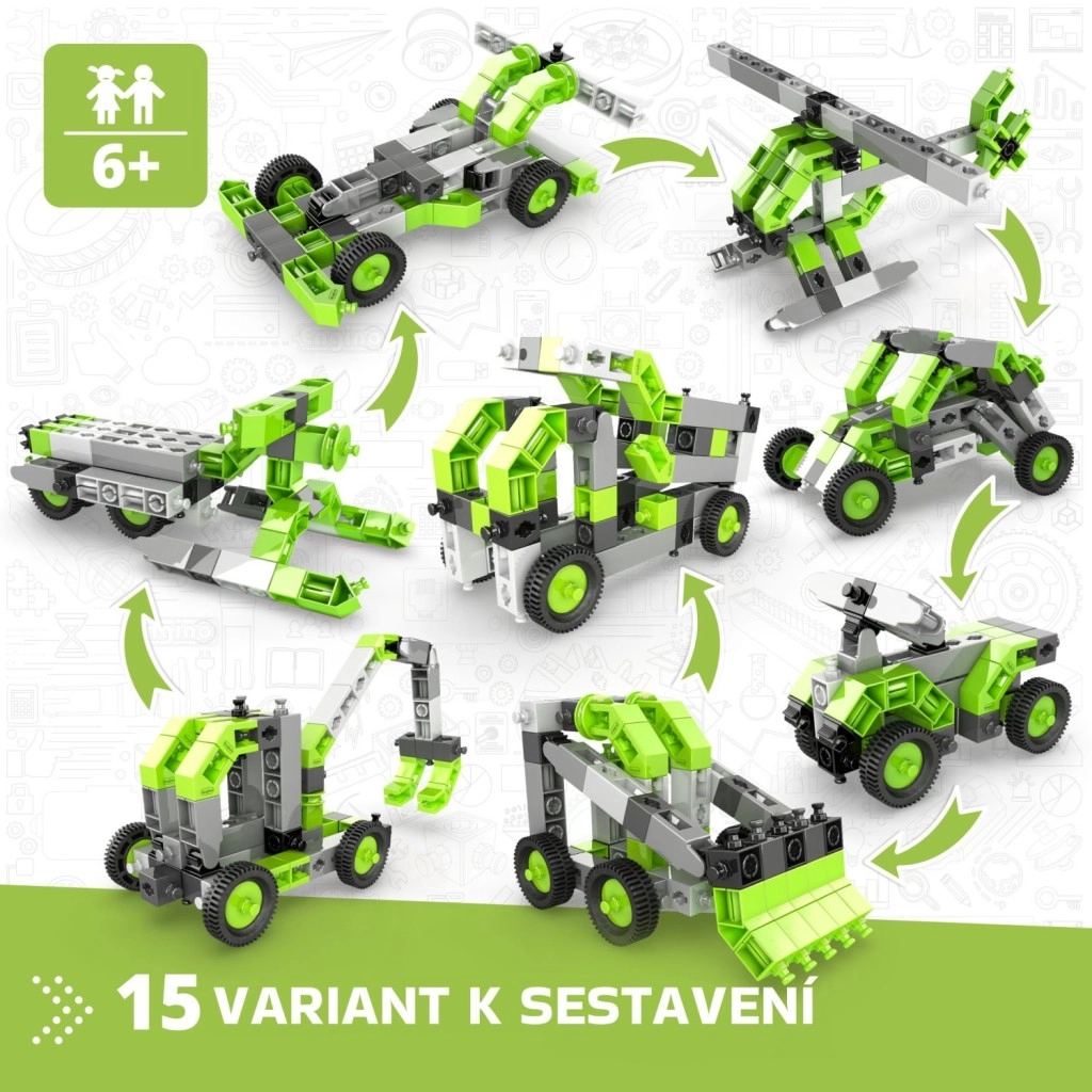 Skab en samling af hjuldrevne maskiner, løftearme og andre køretøjer, som fremmer fantasi og STEM-færdigheder. Sættet er fremstillet i EU (Cypern) og er fuldt kompatibelt med andre Engino-byggesæt, så mulighederne for udvidelse er praktisk talt uendelige.
