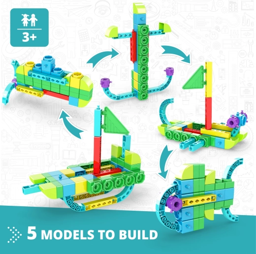 Med dette EnGino-byggesæt kan du udforske undervandsverdenen gennem 5 forskellige modeller og aktiviteter, der udvikler børns fantasi og viden.