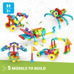 Med dette byggesæt kan børn bygge forskellige modeller, såsom dyr og små biler. Der medfølger vejledning og mobilapp, som trin for trin guider gennem de enkelte byggefaser. Den interaktive Engino kidCAD®-app gør det muligt at vise modeller i 3D for bedre visualisering.