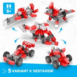 - 5 i 1: formelbil, racerbiler, helikopter, futuristisk maskine/skib og dinosaur