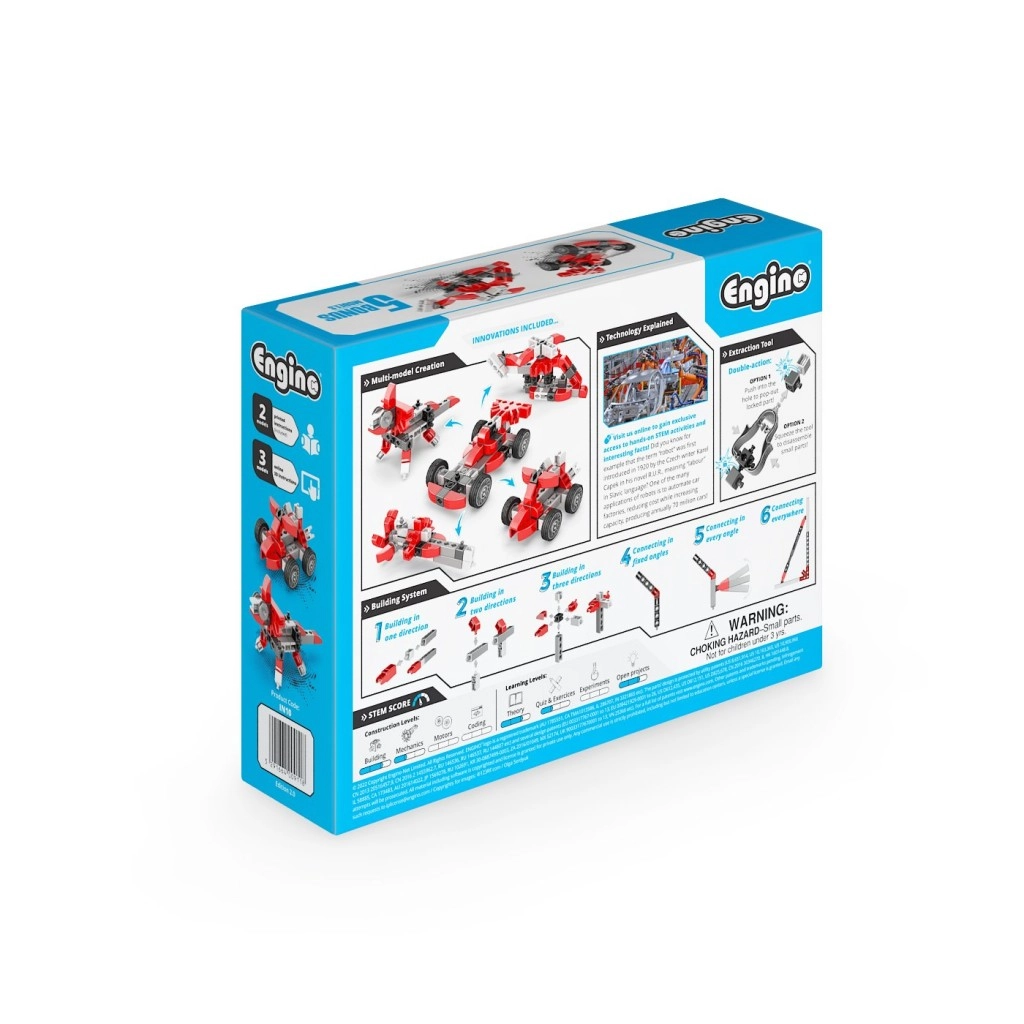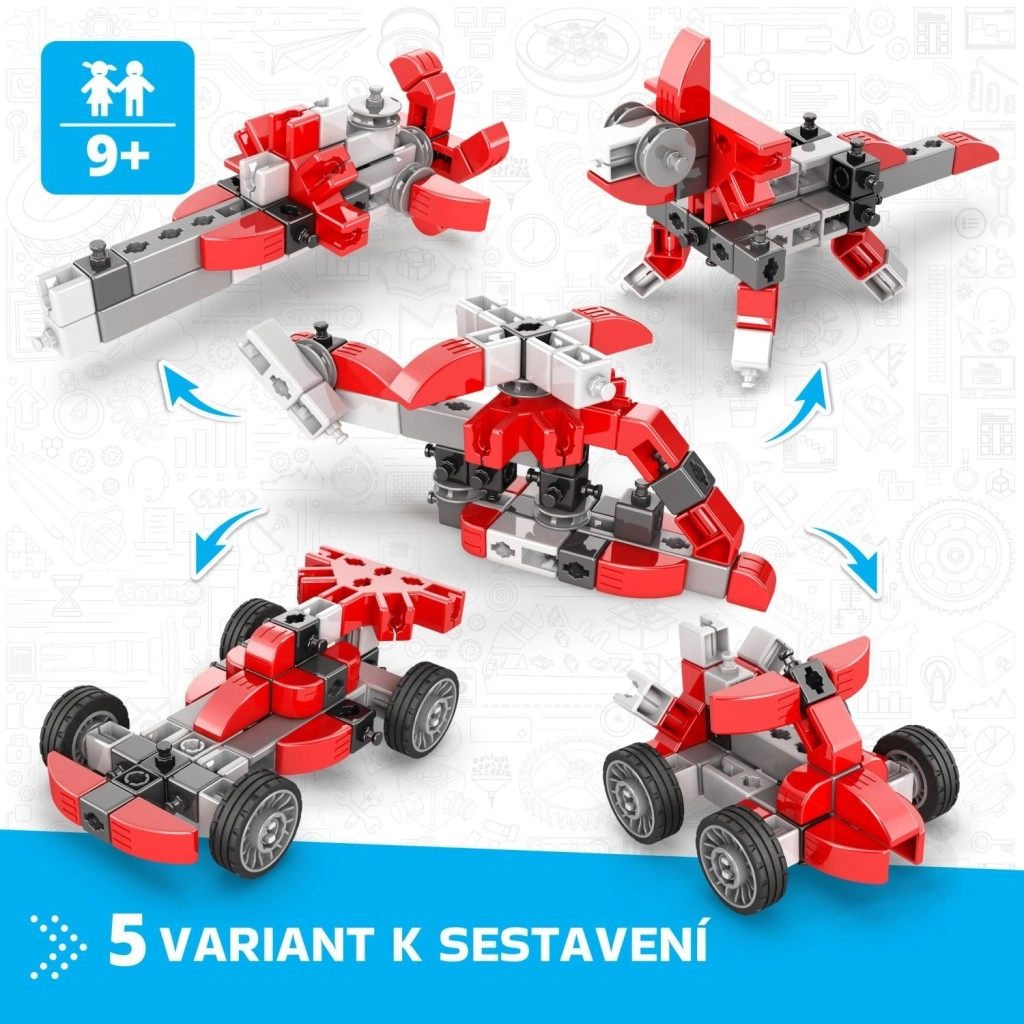 Opdag det kreative Engino-byggesæt for både begyndere og øvede konstruktører. Fra ét sæt kan du nemt bygge op til 5 forskellige modeller – fra formelbil og bil til helikopter, rumfartøj eller dinosaur. Med den interaktive app Engino kidCAD kan du se modellerne i 3D, rotere dem og tilpasse dem. Sættet er kompatibelt med andre Engino-sæt, understøtter kreativitet, finmotorik og er egnet fra 9 år. Fremstillet i EU (Cypern).