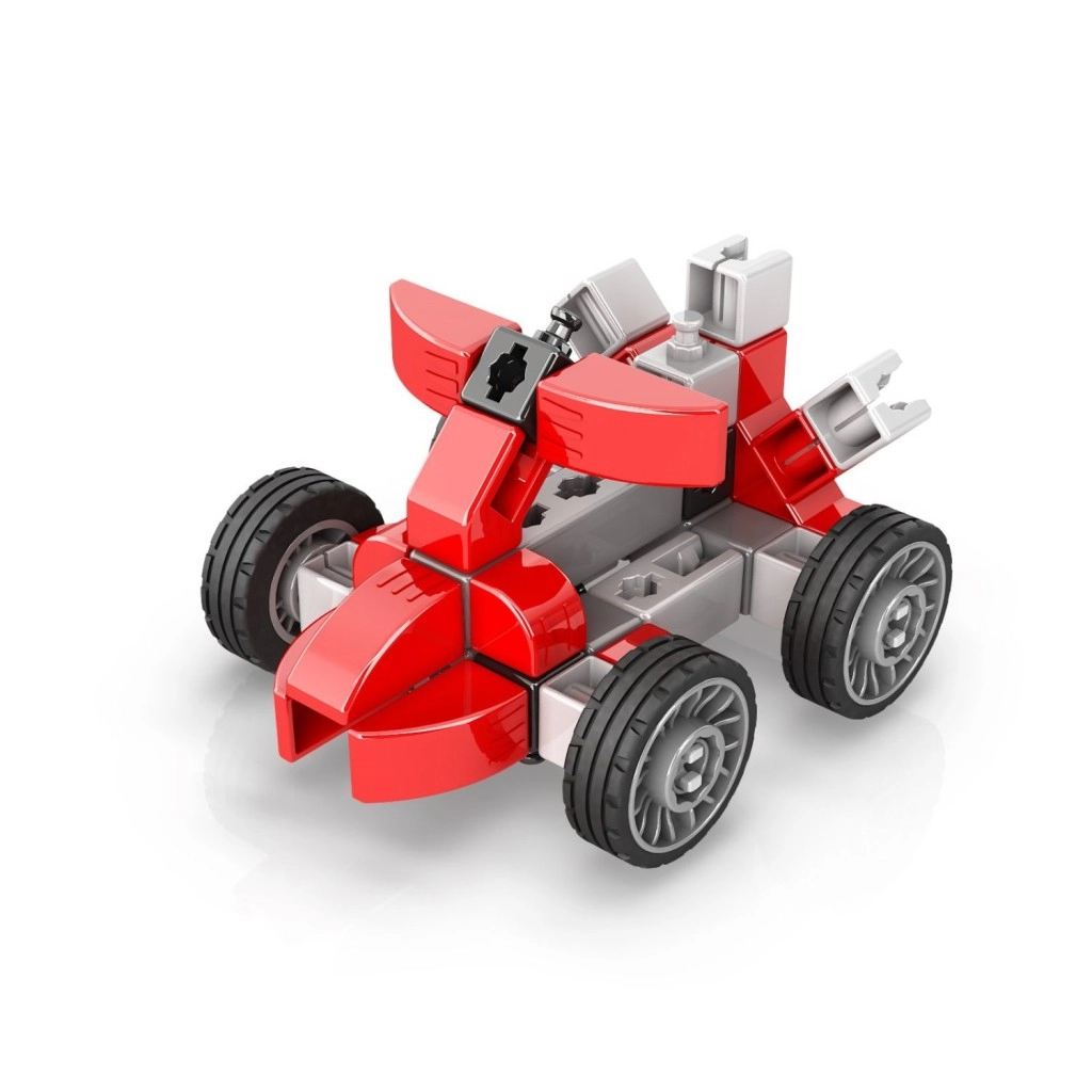 Fra en hurtig formelbil og bil til en helikopter, et rumfartøj og en dinosaur – ét sæt, utallige muligheder og endeløs sjov.