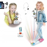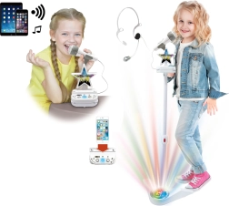 Med dette Bluetooth karaokesæt får du masser af underholdning. Det indeholder en karaokeenhed, stativ med mikrofon og en hovedmikrofon, som sikrer stabil og komfortabel sang selv under bevægelse. Betjeningspanelet er udstyret med en holder til mobil eller MP3-afspiller, så du nemt kan følge tekster eller videoer.