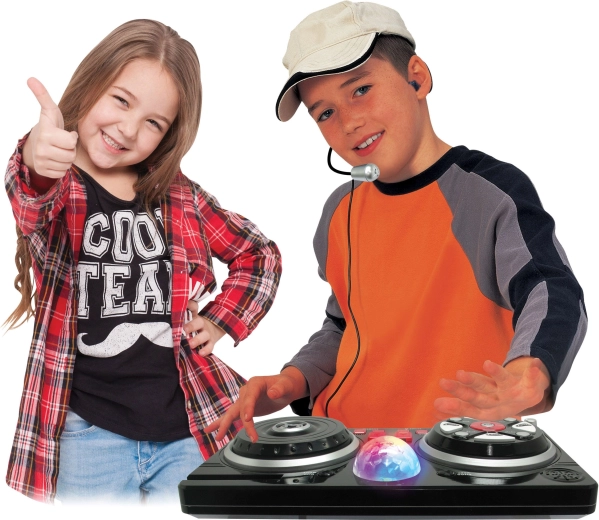 Forvandl børneværelset til et lille lydstudie. Dette mixerpult med en komfortabel hovedmikrofon og lysende diskokugle tilbyder et rigt udvalg af funktioner til kreativ leg og de første musikalske forsøg. Takket være tilslutning af mobil eller mp3-afspiller kan yndlingssange nemt afspilles og mixes med beats og effekter.