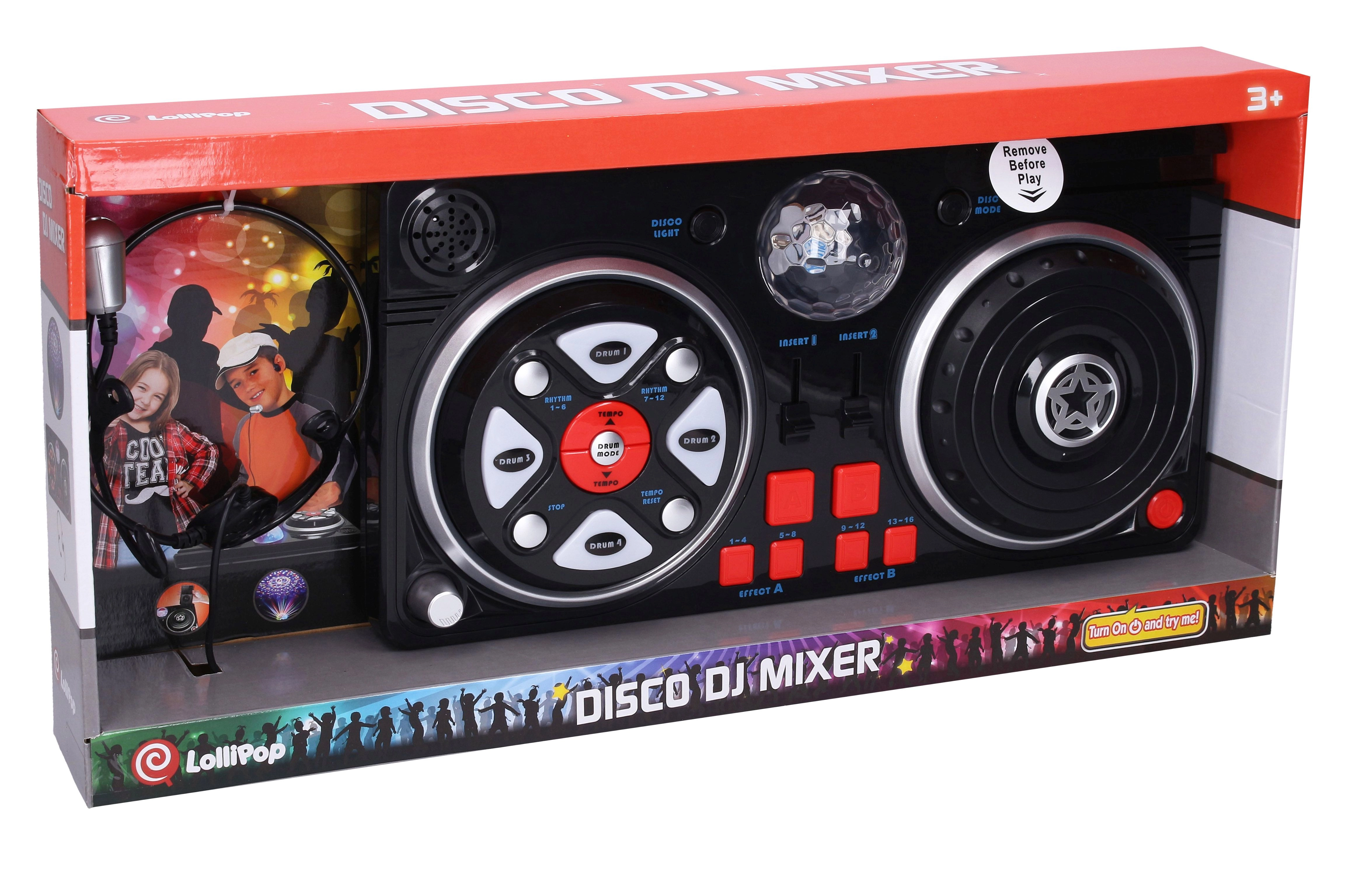 Underholdende mixerpult til børn med hovedmikrofon og lysende diskokugle, som skaber en fantastisk hjemmefest. Tilbyder lys- og lydeffekter, op til 6 discoeffekter, 16 effekter, 12 rytmer og 12 trommelyde. Indeholder indstilling af tempo og lydstyrke, holder til mobil/mp3 og automatisk slukning for at spare energi. Batterier 4× AA medfølger i pakken.