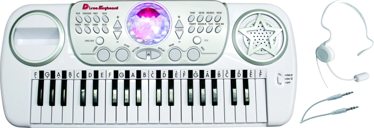 Nyd musik og lyseffekter med dette tangentbord med diskokugle og mikrofon. Ideelt til små musikalske talenter og alle, der elsker sjov og underholdning.
