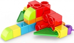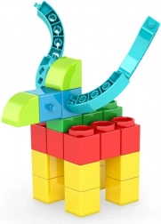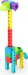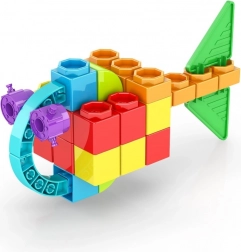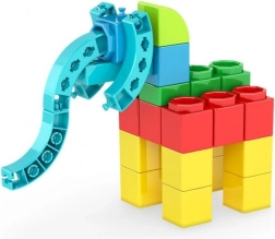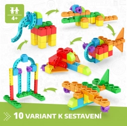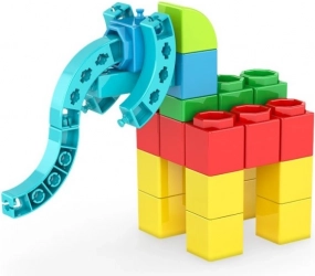 Byg dyr, maskiner og køretøjer af store, farverige og let sammenklikkelige dele. Variationen stimulerer fantasien og finmotorikken.