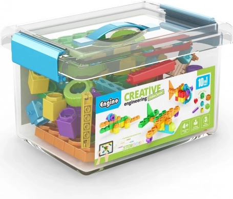 Denne pakke er ideel til de første byggeprojekter: udvikler finmotorik, rumlig forståelse og kreativ tænkning. Delene er kompatible med andre ENGINO-sæt, så modellerne kan udvides og kombineres.