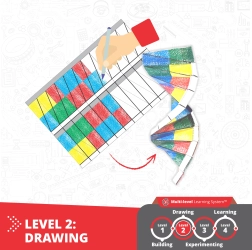 Det firetrins koncept udvikler finmotorik, rumlig forestillingsevne og interesse for naturvidenskab. Børn bygger først modellen, derefter kan de tilpasse den ved at farvelægge papirdelene, prøve enkle eksperimenter og til sidst konsolidere viden gennem legende læring.