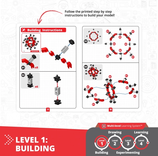 Byggesættet Engino Hvordan vira fungerer giver børn en fængende måde at forstå mikroorganismernes verden på. Det gør det muligt at samle 2 modeller og tilbyder et smart læringssystem i flere niveauer – fra praktisk byggeri til legende læring og forsøg. Takket være Engino kidCAD-appen kan man følge detaljerede 3D-vejledninger og nemt klare selv mere komplekse trin.