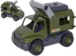 Den robuste militære lastvognsfurgon AUTO CONT er et fantastisk køretøj for små entusiaster af militære missioner. Den holdbare konstruktion tåler hårdere behandling og egner sig til leg både indendørs og udendørs. Det store integrerede håndtag gør det nemt for børn at håndtere og bære den.