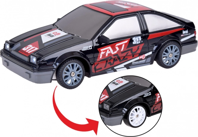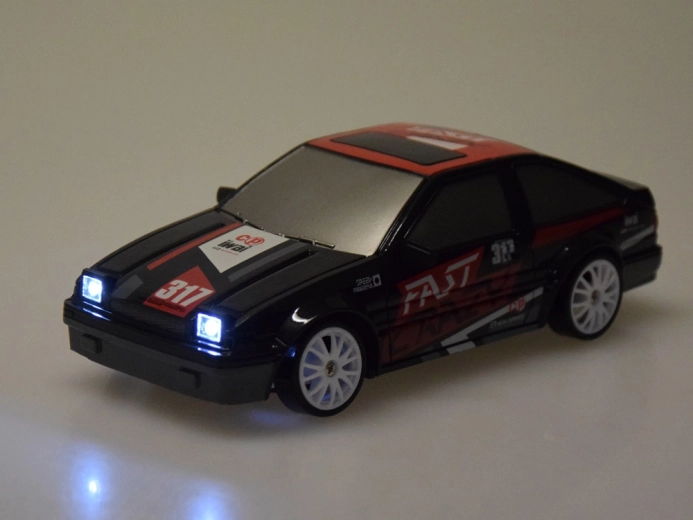 Den stilfulde RC-racerbil er designet til både høj hastighed og drift. Realistiske proportioner i skala 1:24 og en let konstruktion sikrer kvikke reaktioner og fremragende manøvredygtighed. Controlleren på 2,4 GHz minimerer interferens og giver jævn styring frem/tilbage samt drejning højre/venstre.