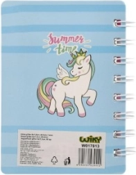 Denne lomme-notesbog med enhjørning kombinerer praktisk udførelse og legende design. Spiralbindingen gør det let at bladre og skrive på begge sider, mens de linjerede sider holder dine noter overskuelige. Den dekorative forside med gennemsigtigt vindue og glimmer giver hver dag et strejf af magi.