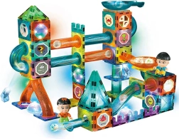 Magnetisk lysende kuglebane er et spændende legetøj til børn, som giver mange timers underholdning. Den kombinerer byggeklodser med magneter og en bane til kugler, hvilket understøtter udviklingen af finmotorik, kreativitet og eksperimentering. Børn kan hele tiden skabe nye baner og konstruktioner.