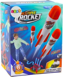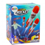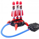 Sæt raketterne på basen og træd på pumpen for at affyre.