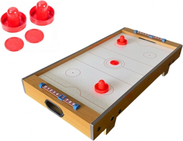 Air Hockey-bordet bringer glæde og konkurrence ind i dit hjem. Under spillet træner børn ikke kun deres reflekser, men også mentale færdigheder. Dette kompakte bord kan nemt placeres i ethvert rum takket være den lette, træbaserede konstruktion.