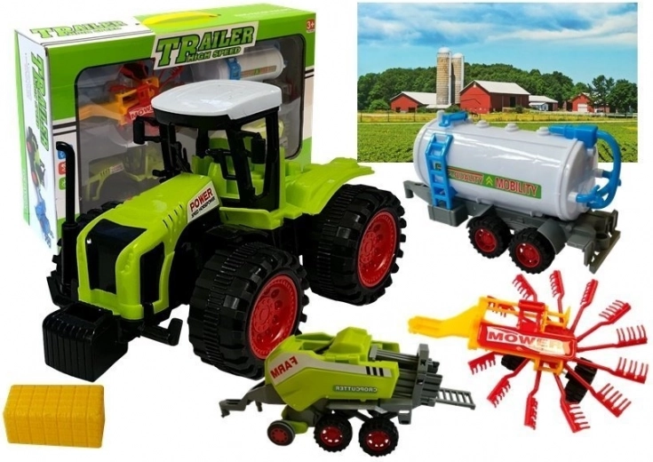 Dette landbrugssæt bringer børn ind i den moderne landbrugsverden. Den grønne traktor med robuste dæk trækker forskellige trailere, så børn kan klare alt fra at vende hø og vande til at presse halm. Takket være holdbar plast og realistisk design er legen både engagerende og sikker.