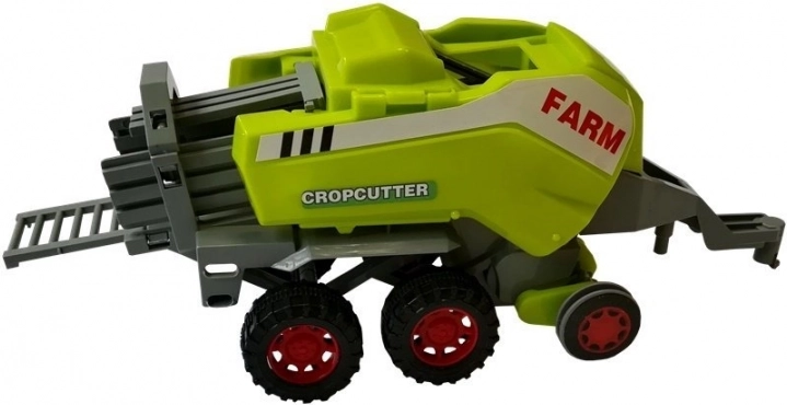 Med høvenderen og presseren kan børn nemt “rydde” marken og forberede halmballer – realistisk arbejde som på en rigtig gård.