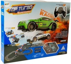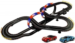 Nyd timevis af spændende løb! Denne elektriske racerbane kombinerer jævn kørsel, spektakulære loops og dynamiske lyseffekter. To biler i skala 1:43 (rød og blå) muliggør et fair løb for to spillere samtidig, mens kontrolpanelet med overskuelige kontakter sikrer nem betjening.