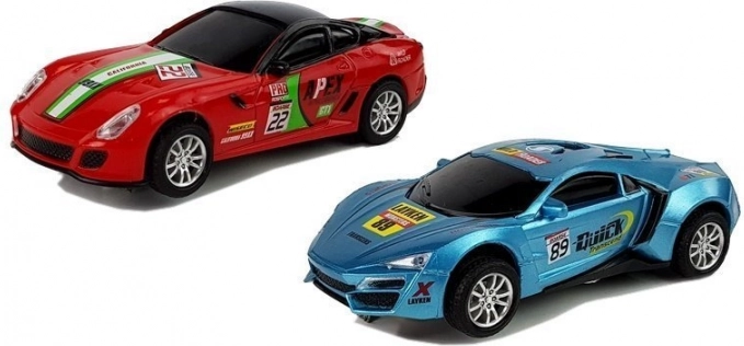 - Pakken indeholder: 2 biler (rød, blå), bane, controllere, strømforsyning