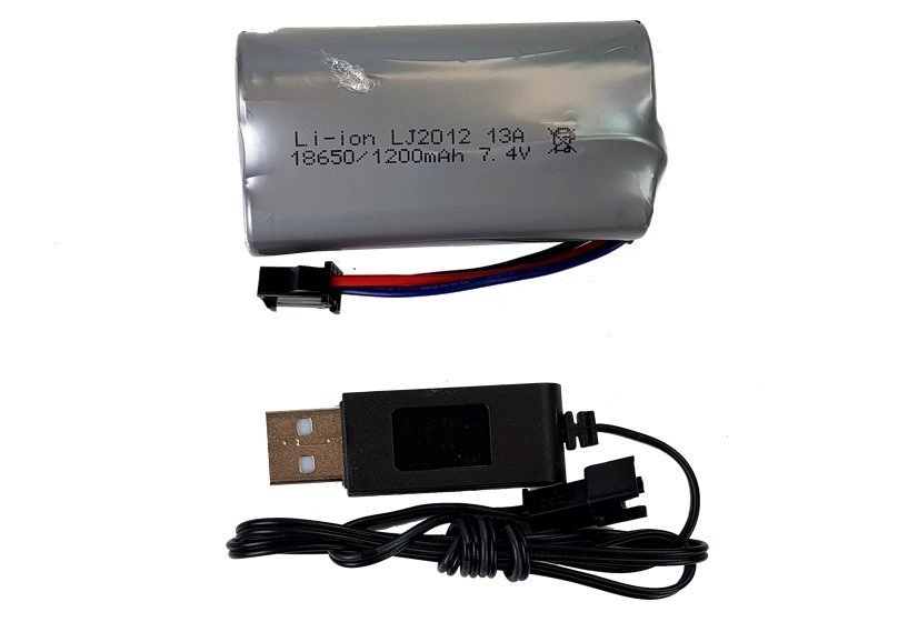 Det genopladelige Li‑ion-batteri 7,4 V 1200 mAh giver masser af energi til længere køreture. En USB-oplader i pakken sikrer nem og bekvem opladning.