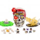 Tag på en episk ekspedition med det enorme Smashers Dino Island-kranie på over 30 cm. Tryk på øjet, som lyser og aktiverer piratstemmen, og begynd at afsløre 30 skjulte overraskelser. Gennemsøg tre slags masser – skum, slim og magisk sand – og find delene til at samle en gennemsigtig dinosaur.