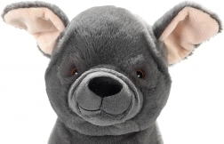 En nuttet plysbamse i stil med en fransk bulldog glæder både børn og voksne. Den er lavet af 100% genanvendt plast, er certificeret efter GLOBAL RECYCLED STANDARD og udmærker sig ved høj kvalitet og et meget behageligt materiale at røre ved.