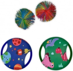 Et sjovt sæt for både børn og voksne, der styrker bevægelseskoordination, reflekser og aktiv udendørs leg. To farverige padle-målskiver med glade motiver og bløde pom‑pom bolde giver masser af bevægelse og glæde ved leg både hjemme og i haven. Sikker udførelse til børn fra 3 år.