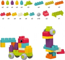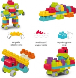 Små Geniers Klodser Soft – det ideelle valg til den første byggeleg. Takket være det bløde, fleksible materiale og de afrundede hjørner er klodserne maksimalt sikre for de mindste børn. Med 10 hjul kan børn bygge enkle køretøjer, udvikle fantasien og lære grundlæggende konstruktionsprincipper.
