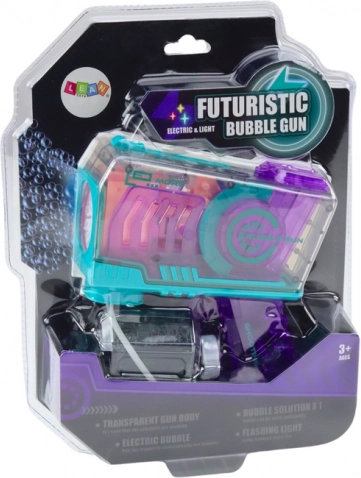 Den lilla boblepistol med lys giver øjeblikkelig glæde – tryk blot på knappen for at skabe masser af farverige bobler. Det futuristiske design stimulerer fantasien, og den ergonomiske form ligger godt i hånden, også for mindre børn.