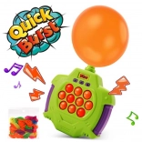 Under spillet vokser ballonen, indtil den springer, og spillet slutter. Konsollen er udstyret med lydeffekter, der tilfører dynamik og energi. Den drives af tre AAA-batterier (medfølger ikke) og inkluderer Pop-It-spillet, et opladningskabel og et sæt farvede balloner.