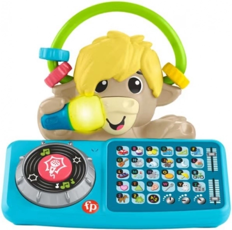 Dit barn kan styre festen med det interaktive legetøj Jak bogstaver og ord fra Fisher-Price. Når den lille DJ trykker på de 26 bogstavknapper på DJ-pulten eller drejer på pladetallerkenen, lyser mikrofonen op i takt med glade sange, lyde og sætninger om bogstaver og de første ord. Børn kan optage glade beskeder, og DJ Jak remixer dem til en original sang!