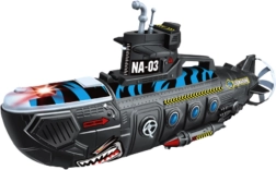 Denne store militære ubåd vil glæde alle børn, der fascineres af soldater, maritime missioner og livet under overfladen. Når den øverste knap trykkes, aktiveres realistiske skyde-lyde, som forstærker stemningen i legen. Takket være de integrerede hjul bevæger ubåden sig let hen over gulvet og er klar til action på børneværelset.