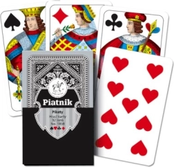 Klassiske tohovede piquet-kort med franske værdier 7, 8, 9, 10, J, Q, K, A. Ideelle til populære spil som Marias eller Prší. Sættet indeholder 32 spillekort med et overskueligt design og en behagelig størrelse til både hjemme- og rejsebrug.