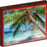 Find ro og velvære med en tropisk strand direkte på dit bord. Dette puslespil med 1000 brikker giver en behagelig udfordring for både begyndere og øvede, og det færdige billede måler ca. 69 × 47,8 cm.