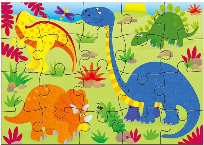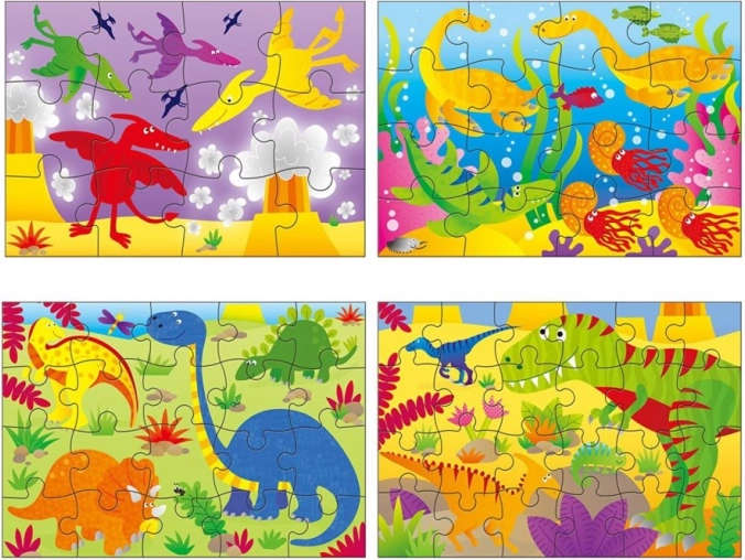 Opdag sjove børnepuslespil med dinosaurmotiver i en praktisk kuffert – et sæt med fire billeder med gradvist stigende sværhedsgrad (12, 16, 20 og 24 brikker). Ideelt til børn fra 3 år, som under lægningen udvikler logisk tænkning, finmotorik og tålmodighed. Den kompakte emballage med plastikhank er perfekt til rejser.