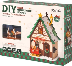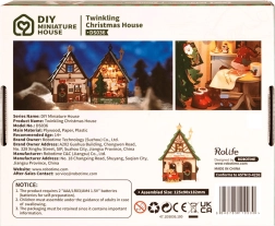 Dette lysende julehus bringer den sande julestemning ind i dit hjem. Indeholder detaljerede dekorationer som julekranse, et sneklædt tag og belysning. Når huset åbnes, vil man finde et dekoreret interiør med gaver og juletræ, der vil fortrylle enhver besøgende.