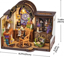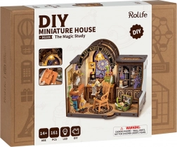 Tag på en rejse ind i magi og trylleri med denne miniaturemodel af et magisk værksted i skala 1:18. Hver detalje er omhyggeligt udformet, fra bøger og papirruller til krystalkugle og en mystisk kuffert. Hyggelig LED-belysning giver rummet en magisk touch.